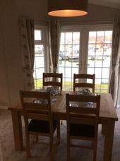 Inside, beautiful new interior design and a soothing neutral colour scheme, highlighted by fawns and duck egg greens flows throughout. The spacious lounge / dining area is light and bright thanks to large windows and feature glazing from the hall. Here a comfortable lounge suite, sideboard, coffee table, dining table and a feature wall-mounted fireplace come together to create a wonderful contemporary living space.